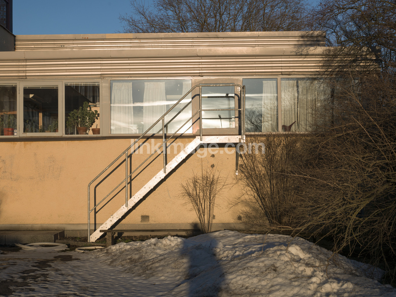 - concrete, buildings, centre, suburb, blue, facade, window, yellow, sky, house, cool, metal, person, monster, shadow, snow, sunlight, stockholm, staircase, wire, täby, winter, our