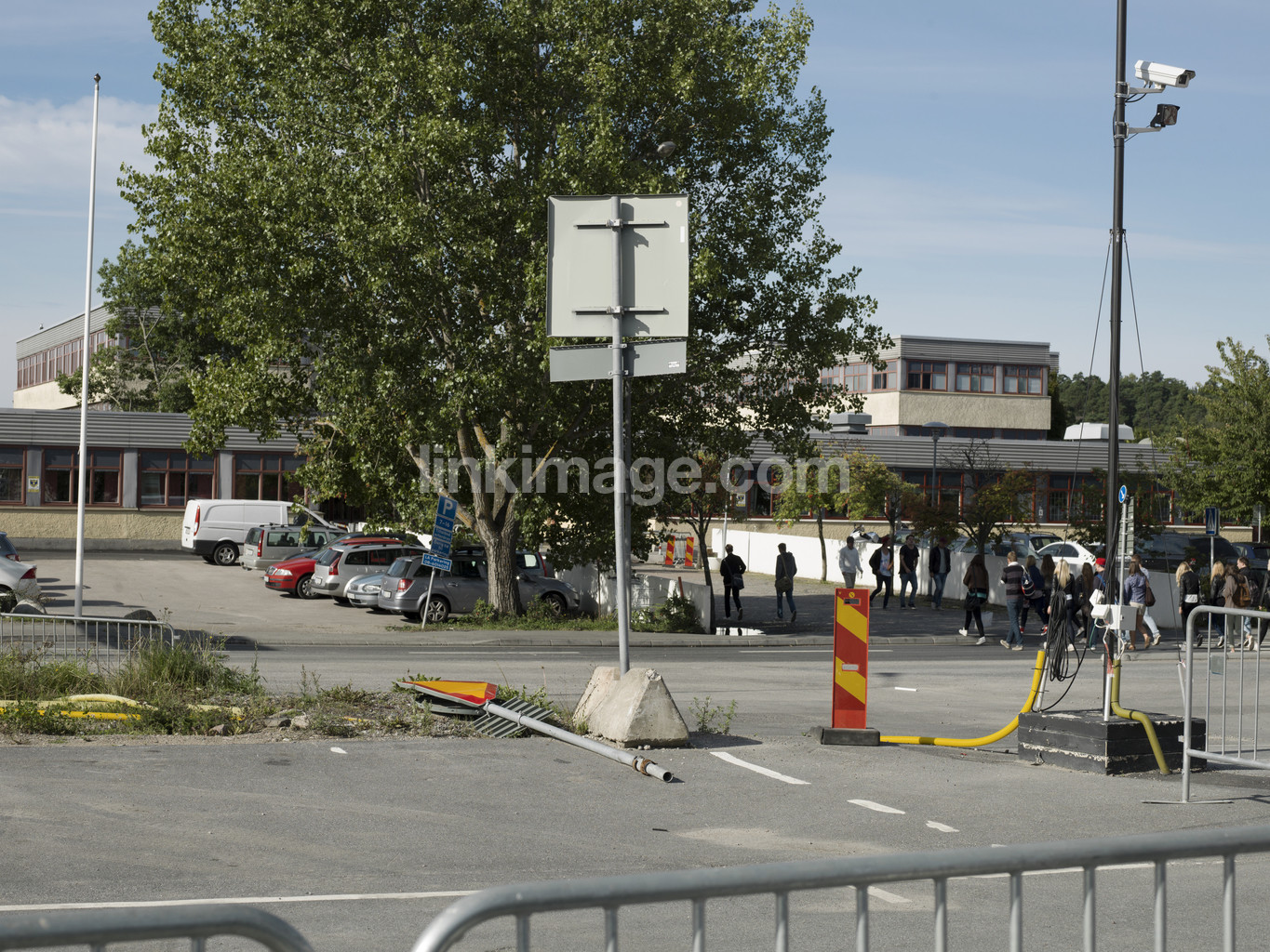 concrete, buildings, centre, suburb, cars, building, window, grass, sky, people, railing, sign, stockholm, wire, täby, ways, plants