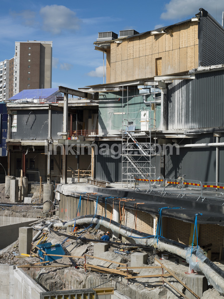 - concrete, buildings, centre, suburb, work, construction, build, construction work, sky, shopping center, cloud, tear, stockholm, position, täby