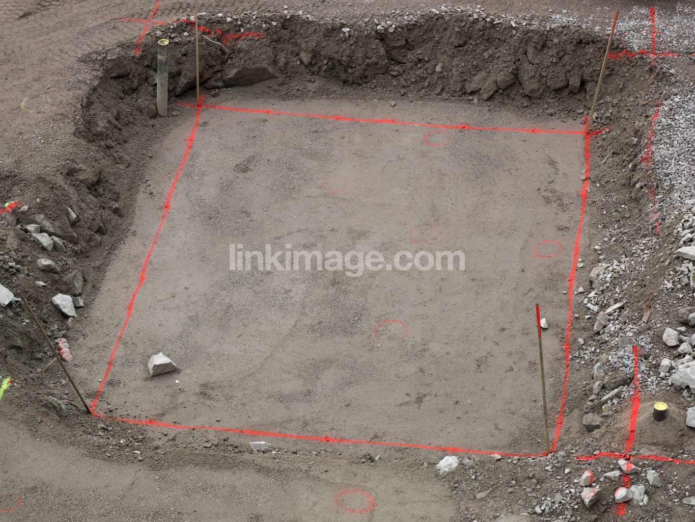 - demarcation, construction, building, cast, basic, gravel, limit, dig, hole, corner, box