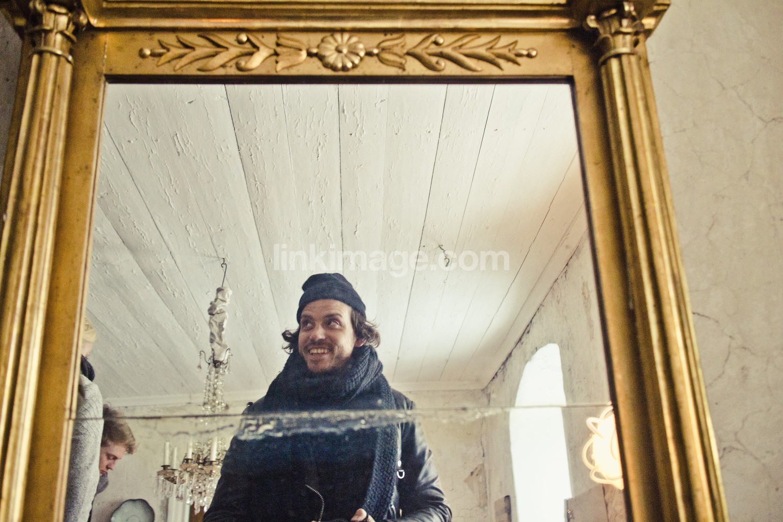- gotland, winter, holiday resort, contrast, cold, ispegel, gold frame, moss, a man, guy, 28-30 years, self portrait, selfie, scarf, hair, interior, jacket, light, reflections, room, reflection