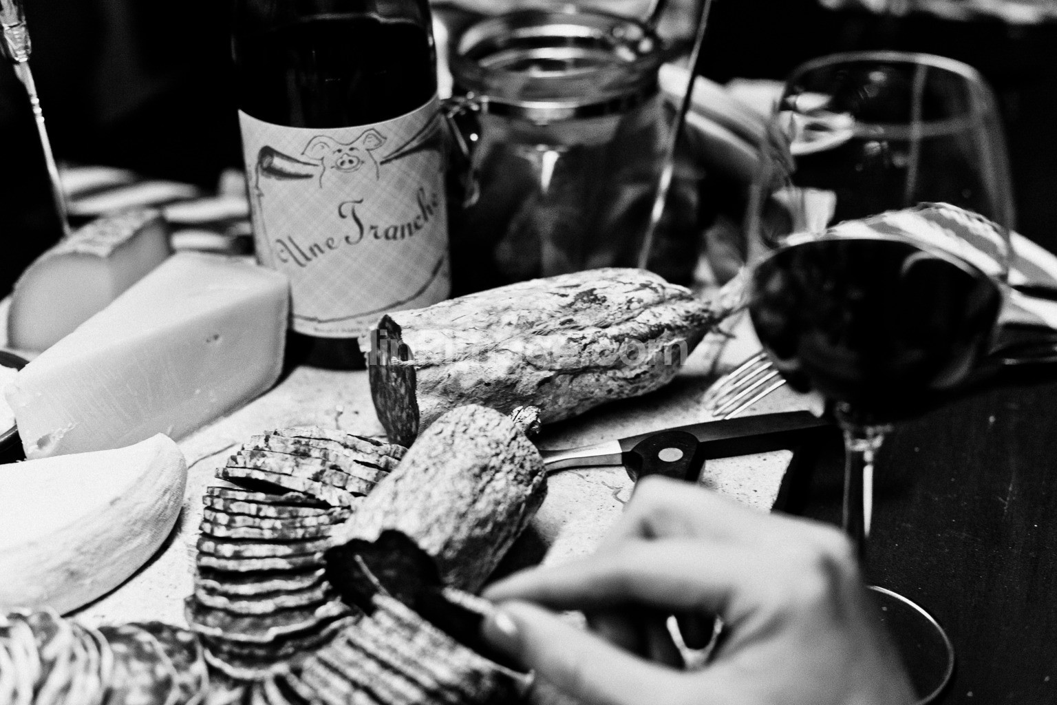 - charcuterie, sausage, cheeseboard, cheese, french, salami, ham, meat, delicacy, party, dinner, share, structure, brie, blue cheese, knife