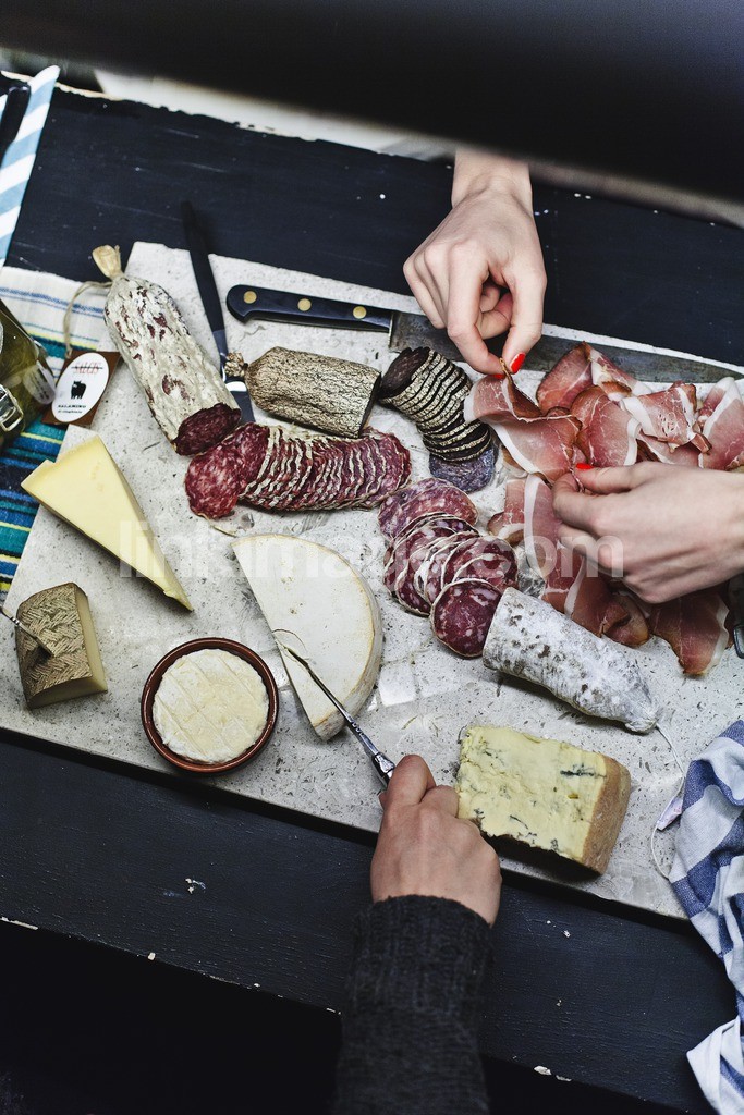 - charcuterie, sausage, cheeseboard, cheese, french, salami, ham, meat, delicacy, party, dinner, share, structure, brie, blue cheese, knife, mixed, details, fresh, happens, various, pick