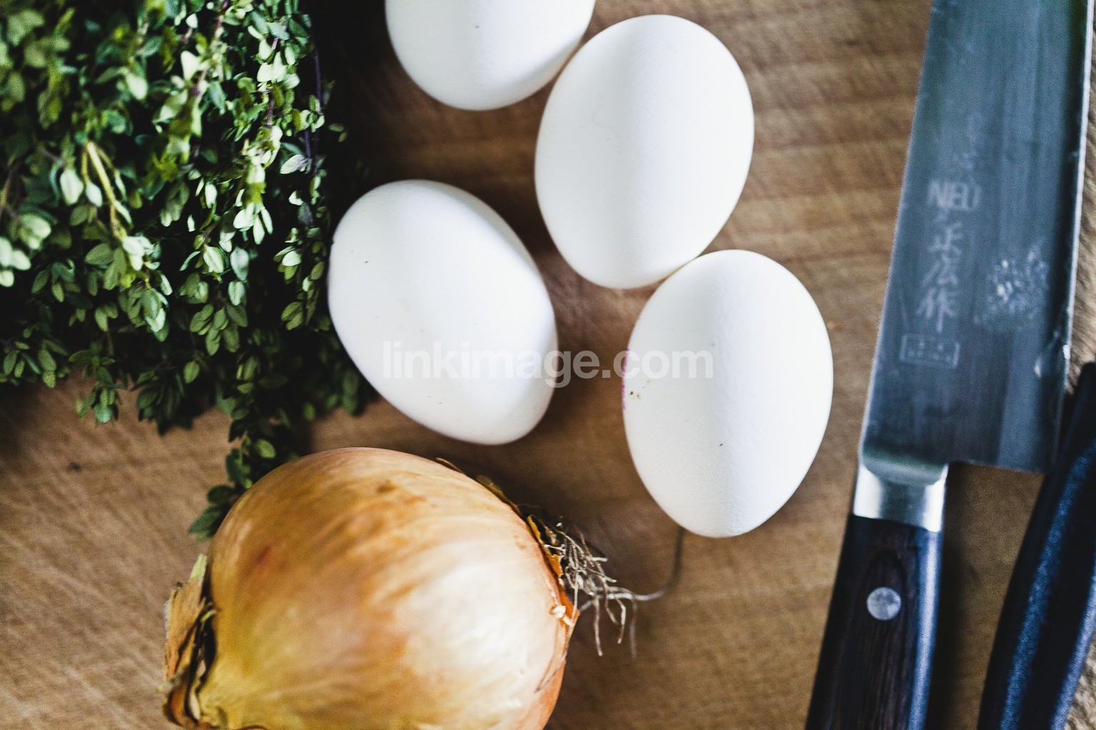 - egg, thyme, yellow, onion, knife, cutting board, preparation, omelette, ingredients, prepare, chef, restaurant, raw, herb, spice, knives, japanese knife, kitchen, cooking, meals, otes