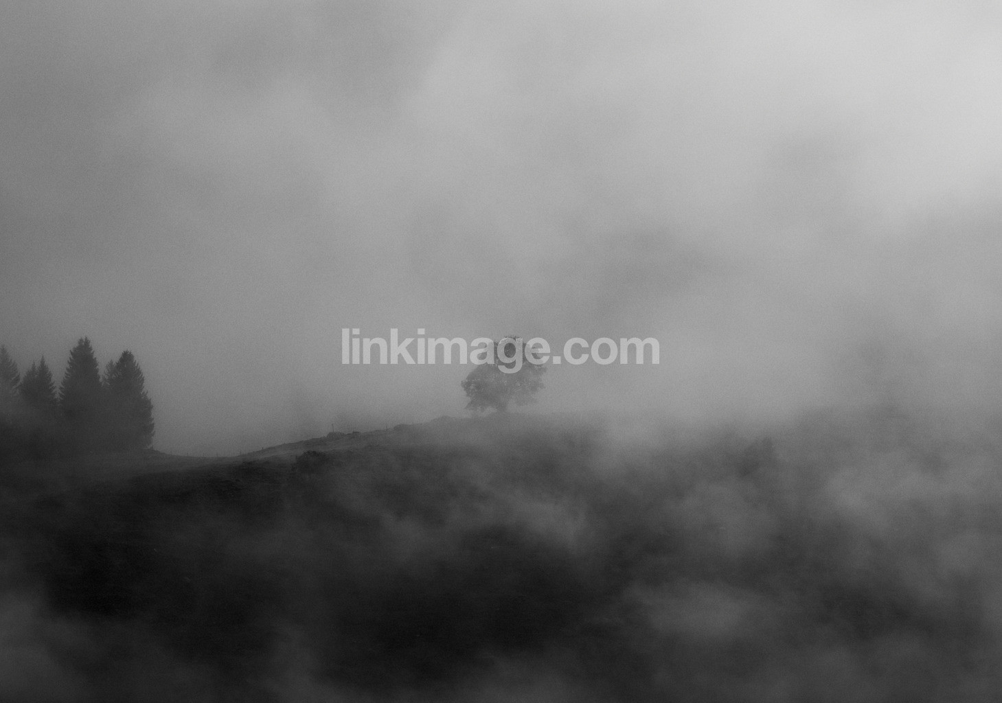mountain, fog, alone, art, hill, cloud, mysteriously, dark, rain, shadow, tree, weather