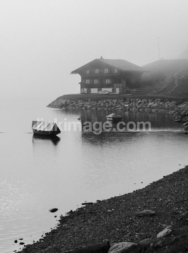 lodging, boat, fog, peacefully, sea, house, coastal, landscape, calmly, cloud, lake, stone, beach, water, ode