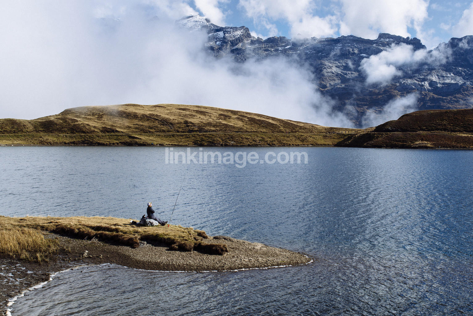 - man, activity, alps, mountain, alone, fisherman, sea, high, landscape, calmly, cloud, holiday, is, lake, silent, outside, view, water