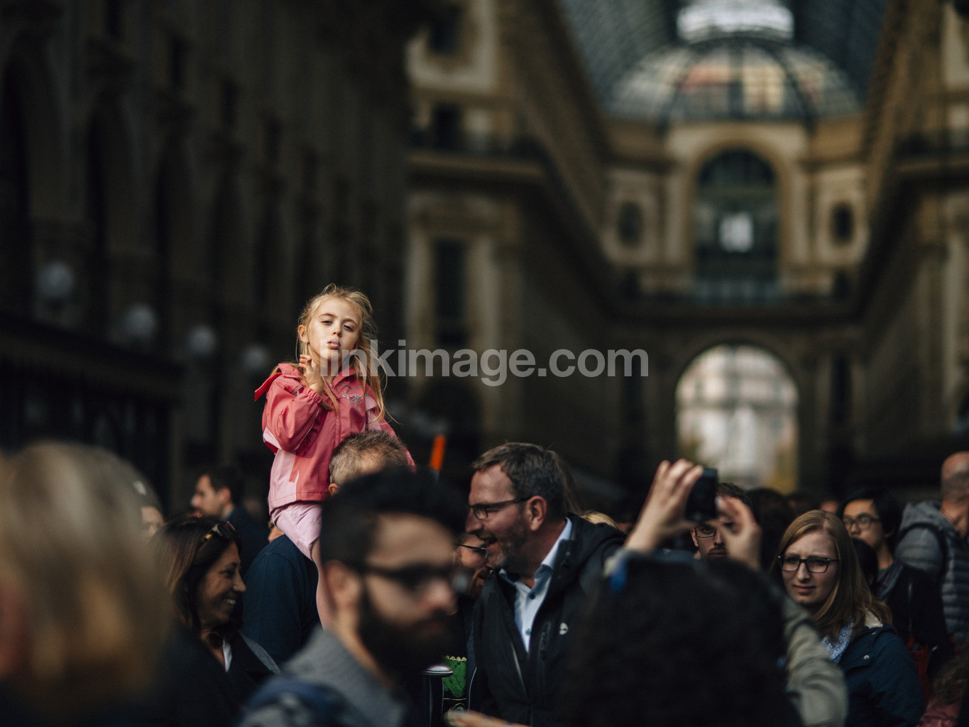 - shoulders, girl, crowd, people, curious, city