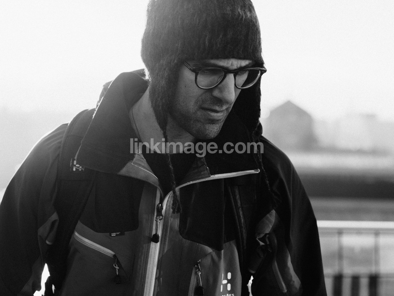 - man, angry, glasses, hat, jacket, cool, concentrated, portrait, winter