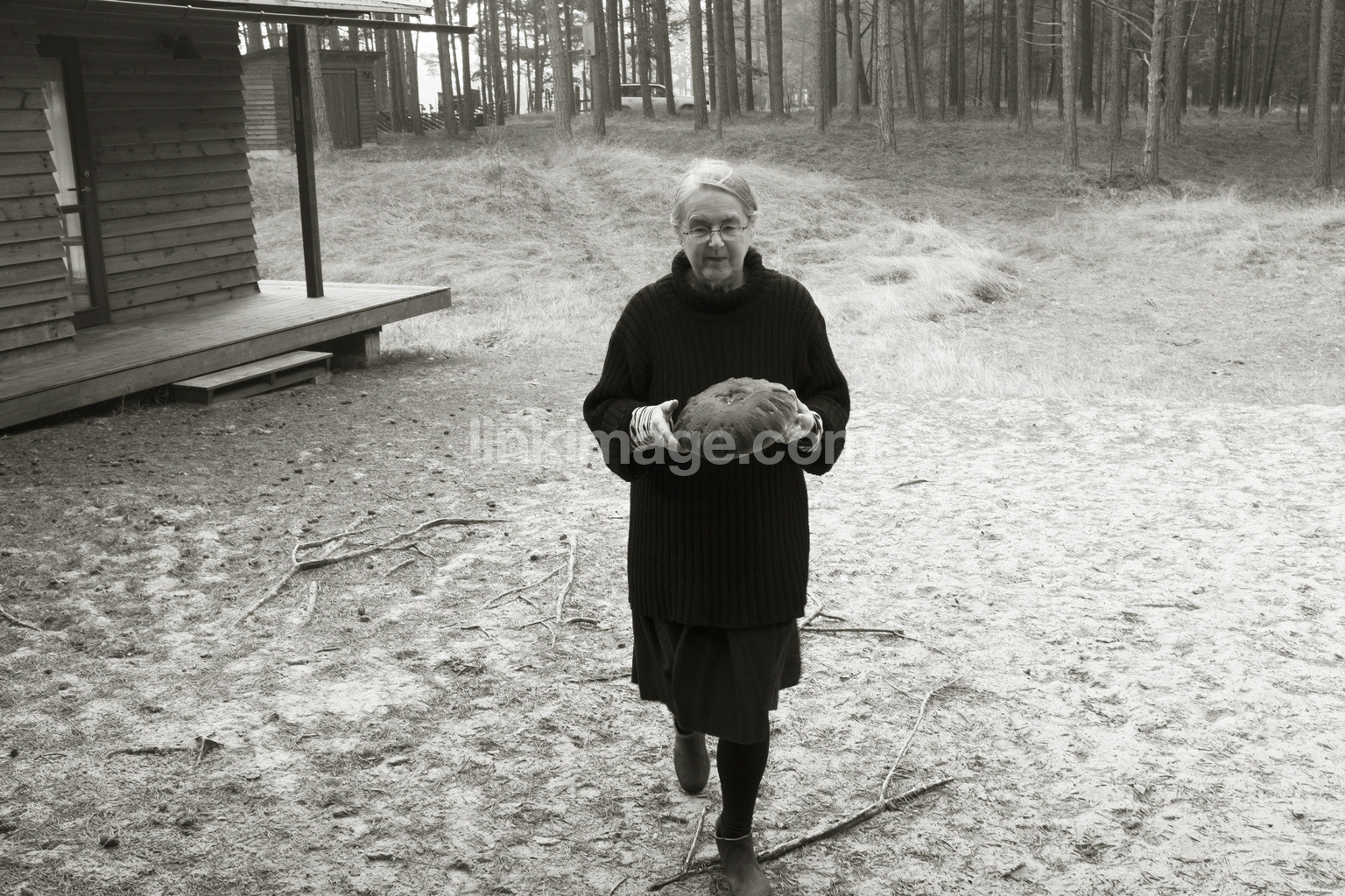 - woman, lady, older, pensioner, bread, bake, quality of life, land, house, forest