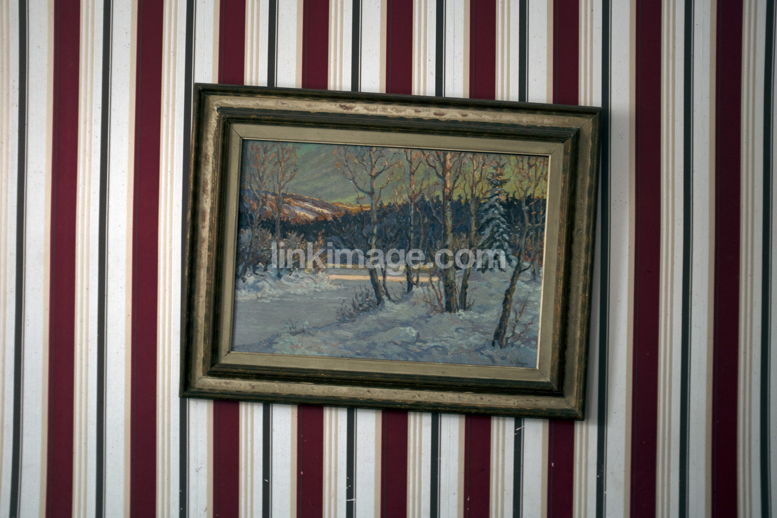 - painting, landscape, winter, season, weather, wallpaper, striped, obliquely, winter landscape, art, furnishings