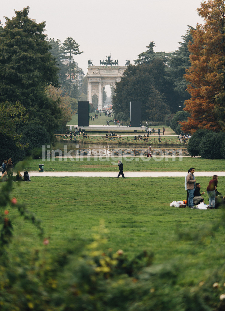 - park, people, shrubs, grass, green, go, history, autumn, italy, milano, monument, picnic, red, scene, lake, statue, tree, tourists, water, our