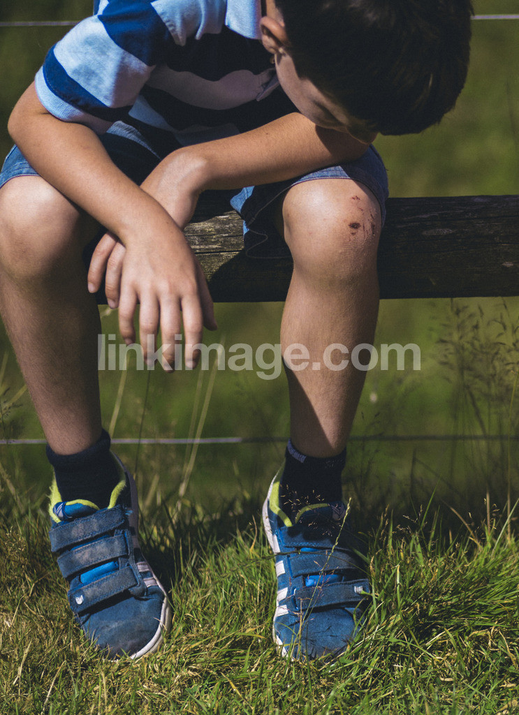 - children, childhood, bone, blood, blue, grass, green, knee, playing, brave, accident, evil, boy, portrait, damaged, graze, summer, fence, strong, crane
