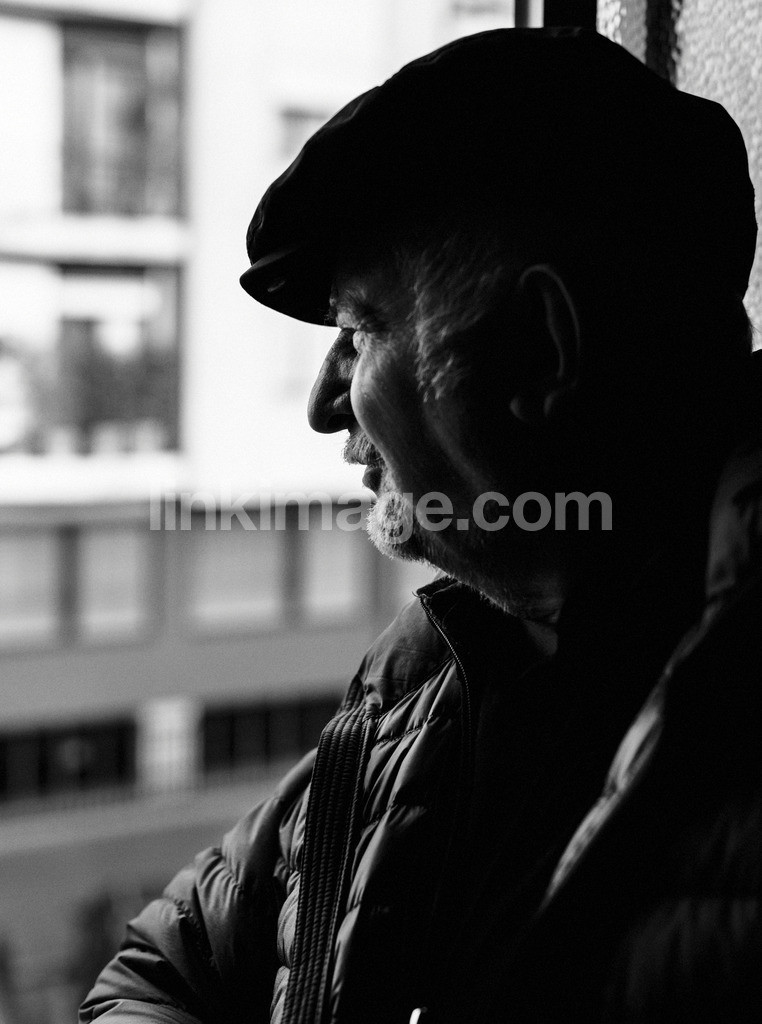 man, grin, window, gammla, happy, hat, cap, peek, latin american, curious, portrait, profile, looks