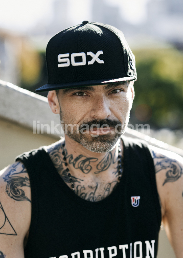 - man, hipster, sox, cap, mustache, portrait, beard, summer, tattoo, tattoos