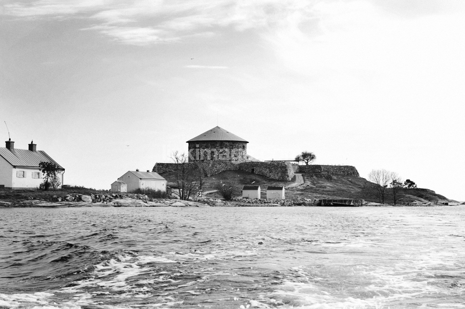 - building, sea, home, sky, historic, house, cloud, lake, castle, fence, stone, tower, water, island, ode