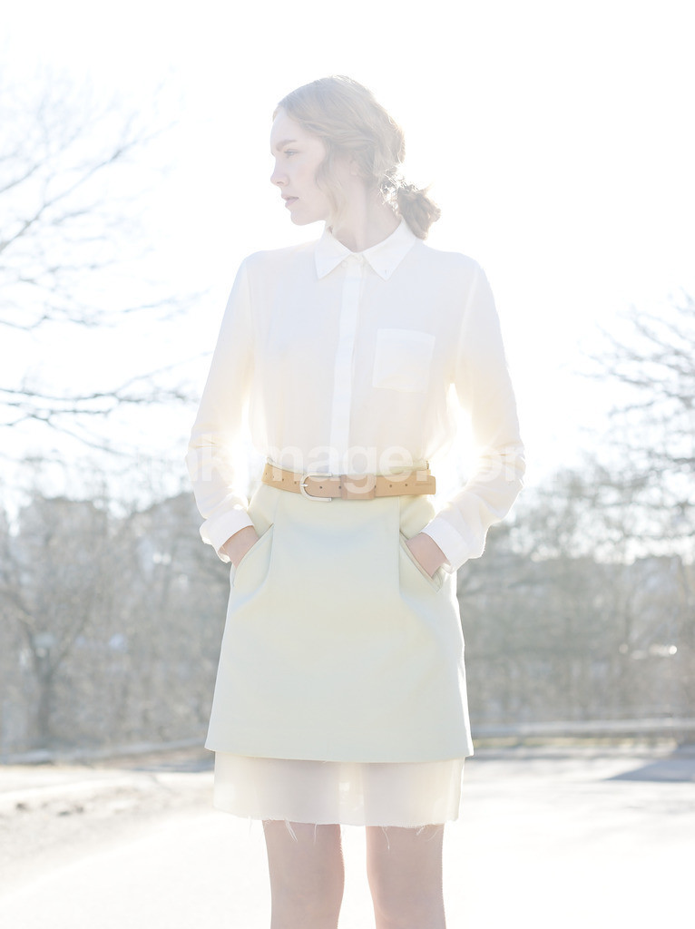- pale, nice, street, skirt, clothes, woman, fashion, model, portrait, pose, shirt, sharp, style, swedish, girl, tree, outside, beautiful