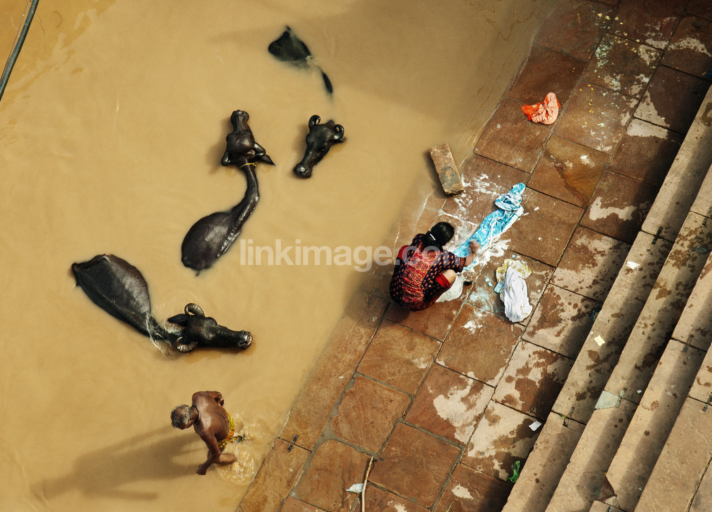 both, cattle, brown, animal, river, form, handwash, india, clothes, drive, cow, culture, woman, above, perspective, purely, routine, swim, lake, shadow, smuttsigt, cool, step, laundry, wash, outside, hot