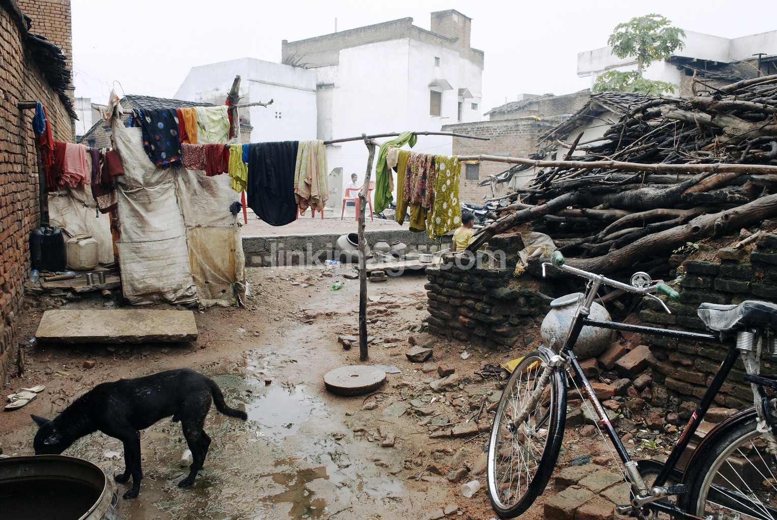 - bike, animal, poor, alley, courtyard, home, dog, house, india, earth, clothes, sand, debris, smuttsigt, laundry, clothesline, outside