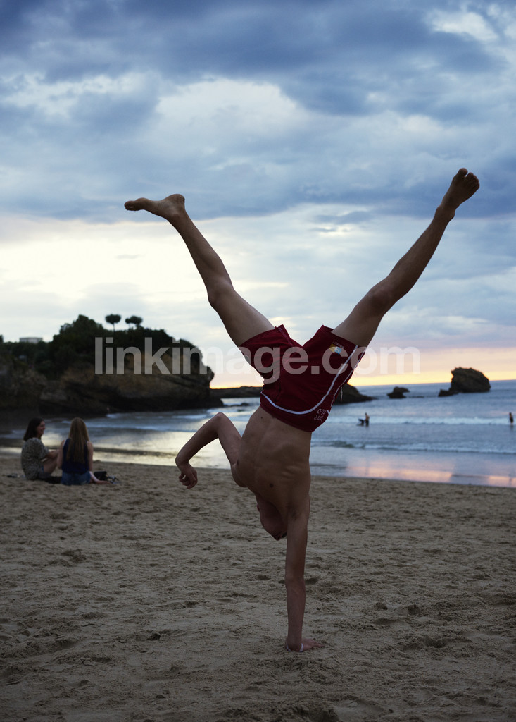 - acrobat, physics, gymnastics, handstands, sea, evening, holiday, summer, beach