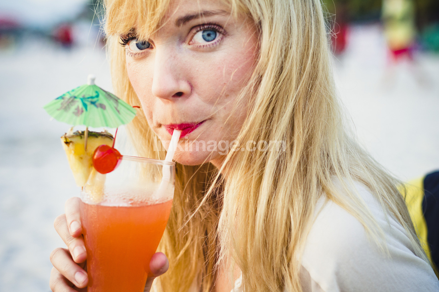 - malaysia, holiday, beach, leave, view, free, sunset, sea, a woman, girl, 25-35 years, drink, straw, parasol, carrying, blonde, model released, pile, scandinavian