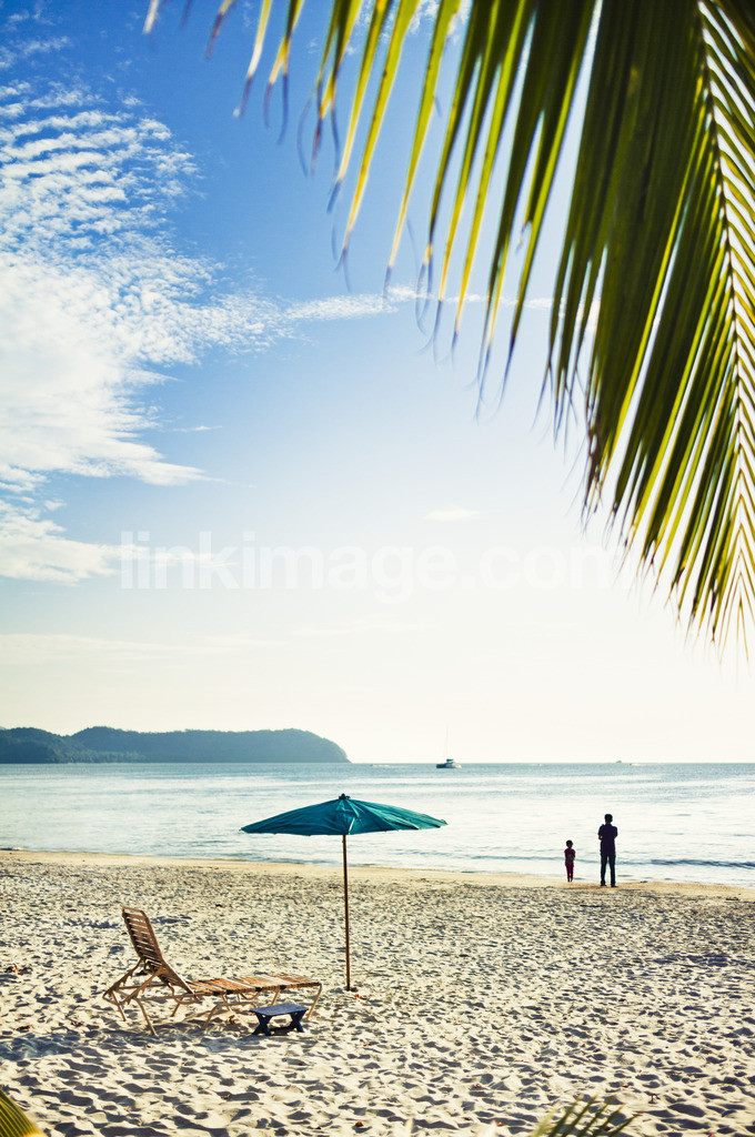 - beach, sun, chair, parasol, two people, father and son, photo, portrait, holiday, palm, paradise beach, paradise, sandy beach, photograph, dream, idyll, sand, turquoise