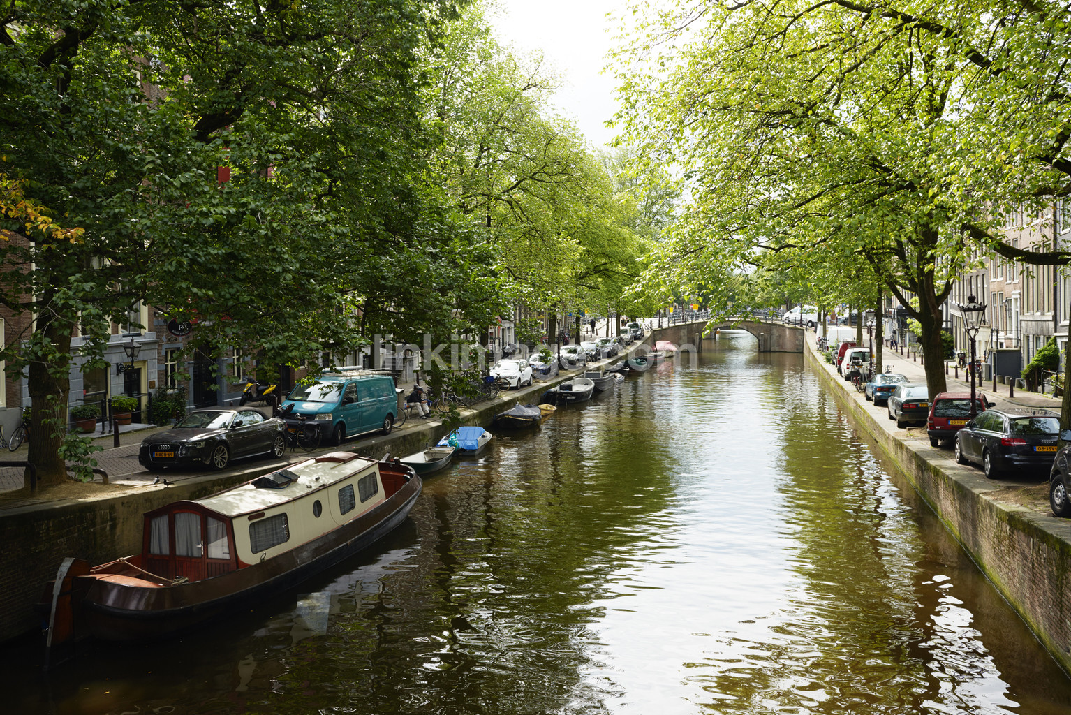 - amsterdam, facade, frönska, houseboats, channel, leafy, netherlands, pastel, light strained, specular, townhouse, tree