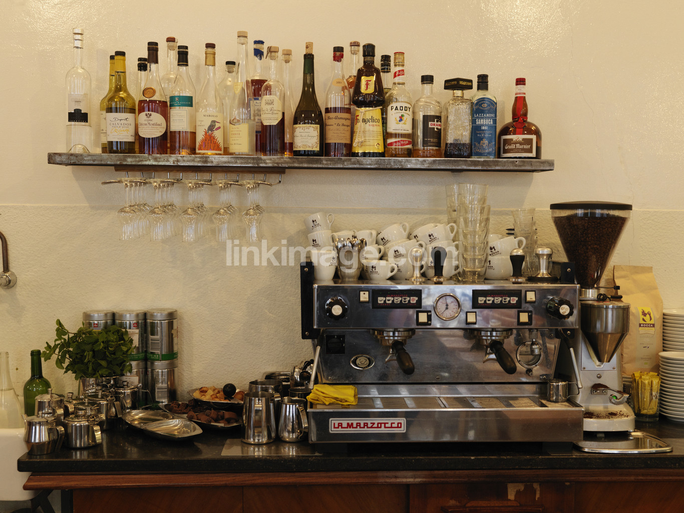 - alcohol, cafe, detail, fresh herbs, glass, coffee machine, food, restaurant, spirits