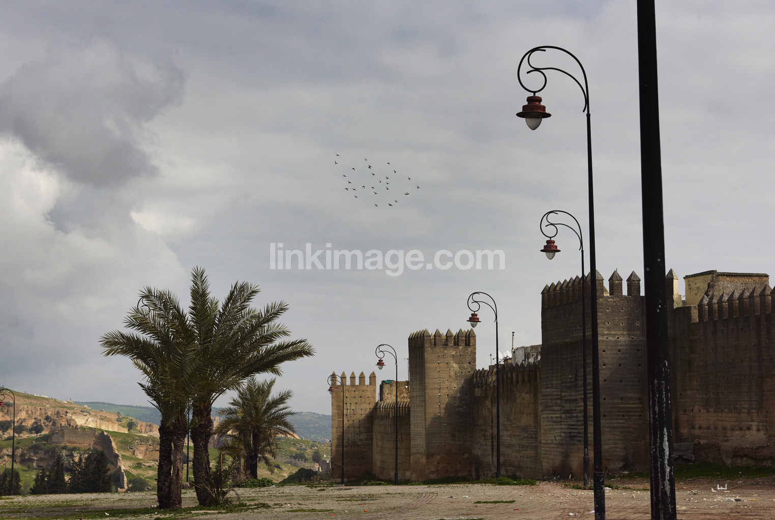 - architecture, fez, sky, history, culture, lampposts, morocco, cloud, wall, north africa, palm trees, city, tower