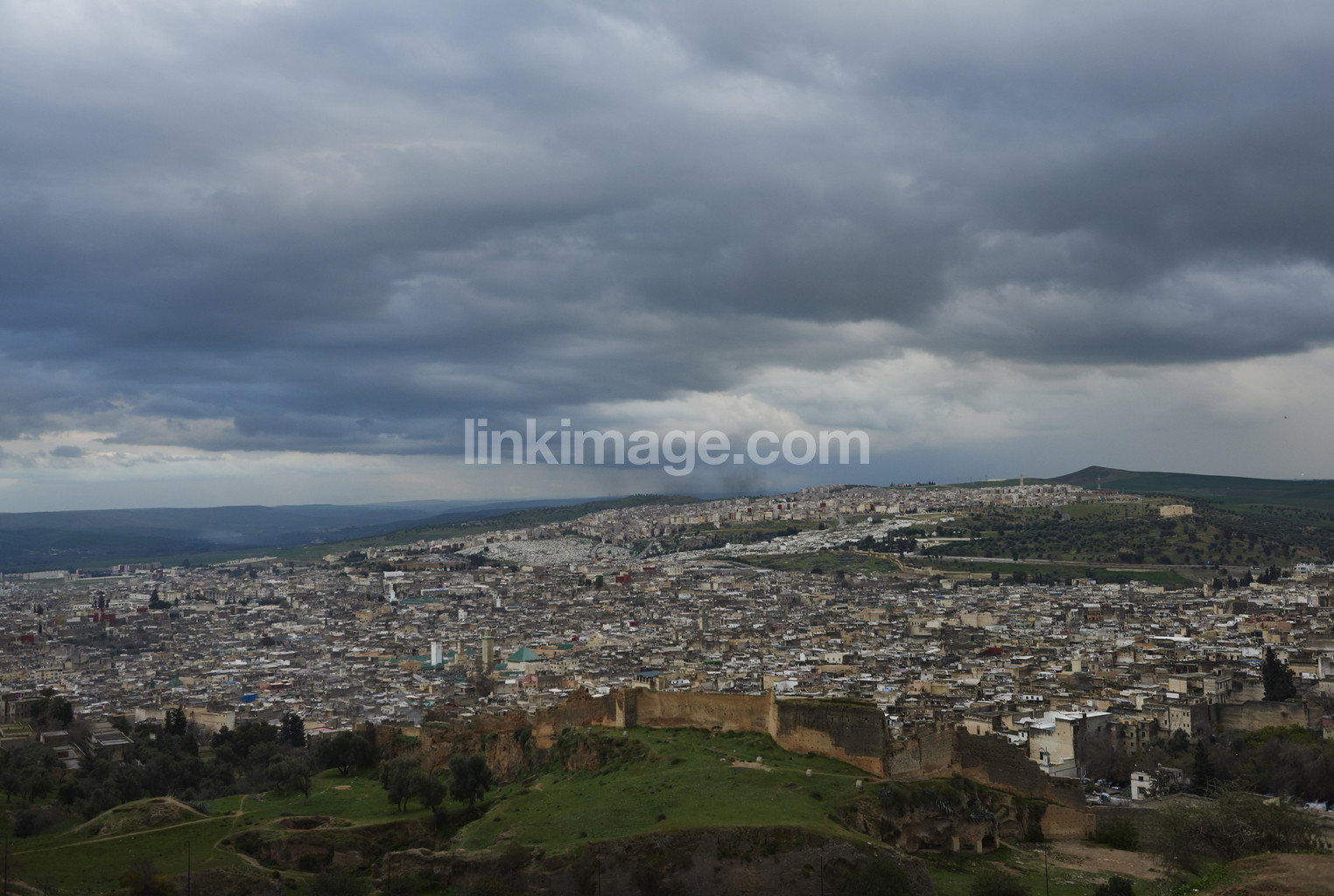 fez, greenery, sky, house, housetop, hills, coup led, morocco, medina, cloud, city, view