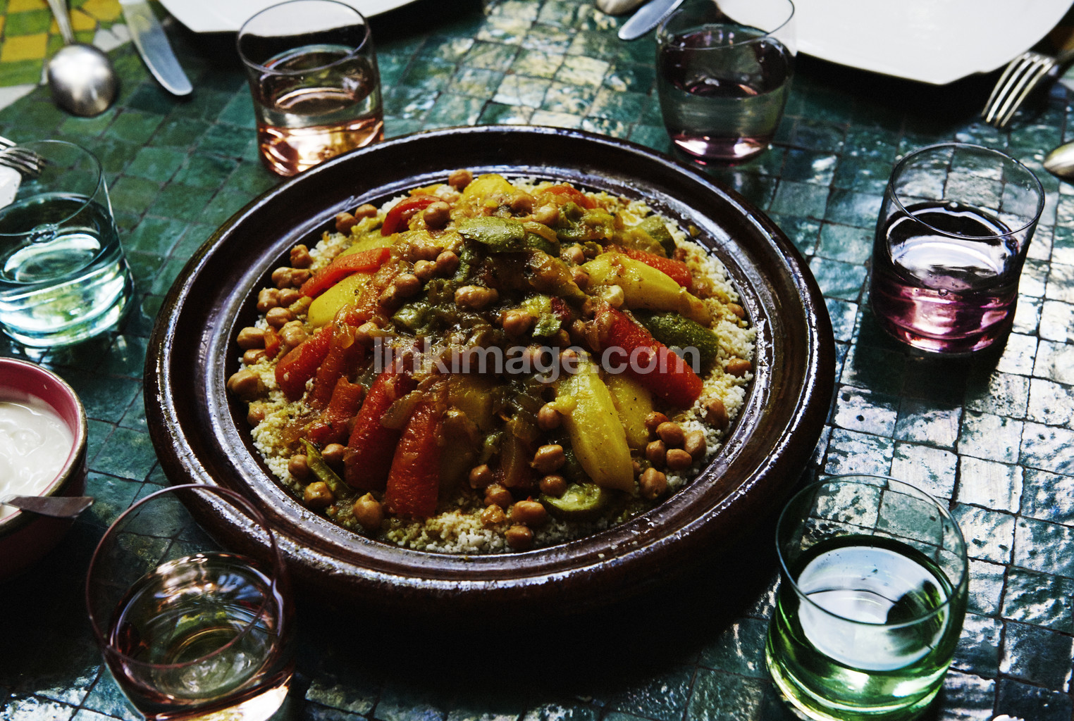 - couscous, fez, glass, stew, morocco, food, dinner, mosaic table, north africa, dishes, turquoise