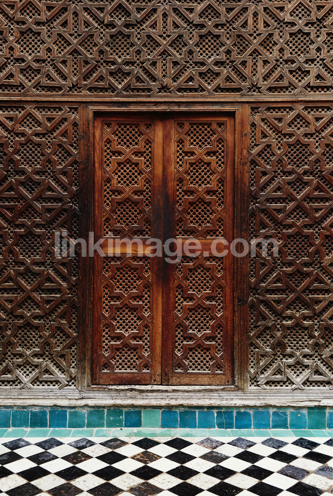 - architecture, fez, morocco, mosaic, mosaic floor, north africa, port, school, wainscoting, vault