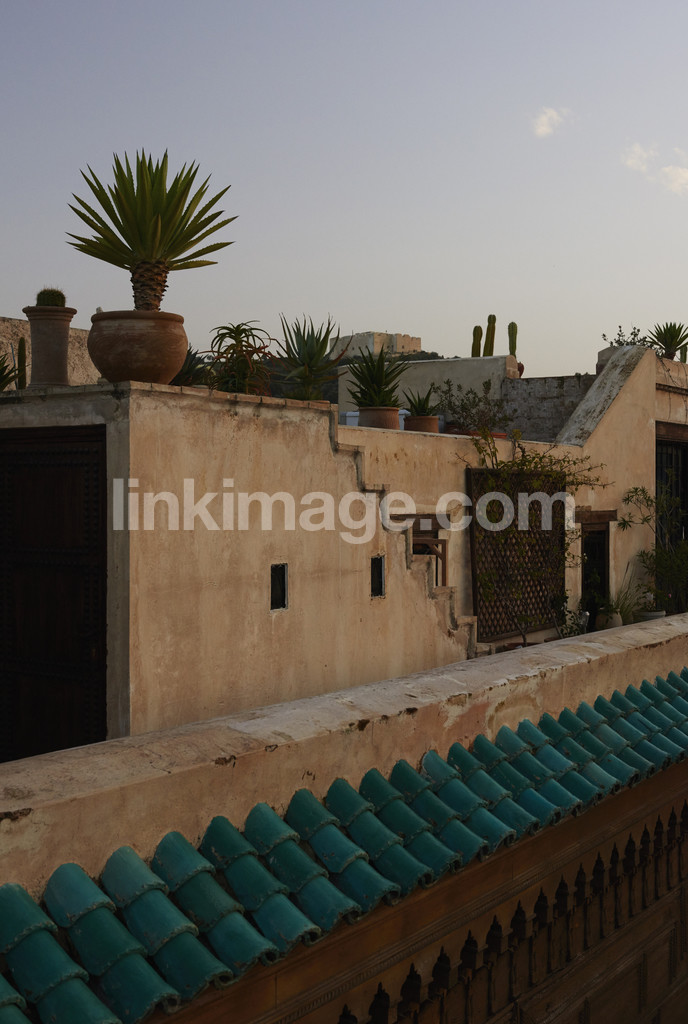 - africa, fez, sky, housetop, pots, morocco, north africa, palm, roof terrace, terrace