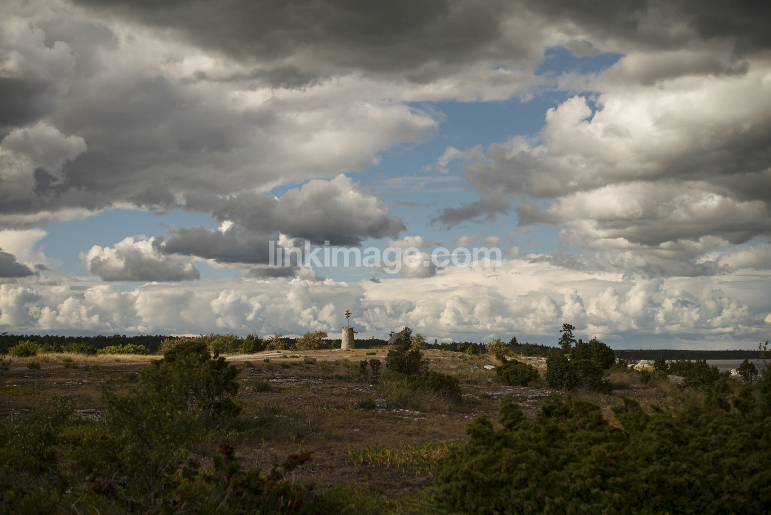 shrubs, field, sea, sky, coastal, landscape, cloud, nature, sun, tree, expanses, överskyat