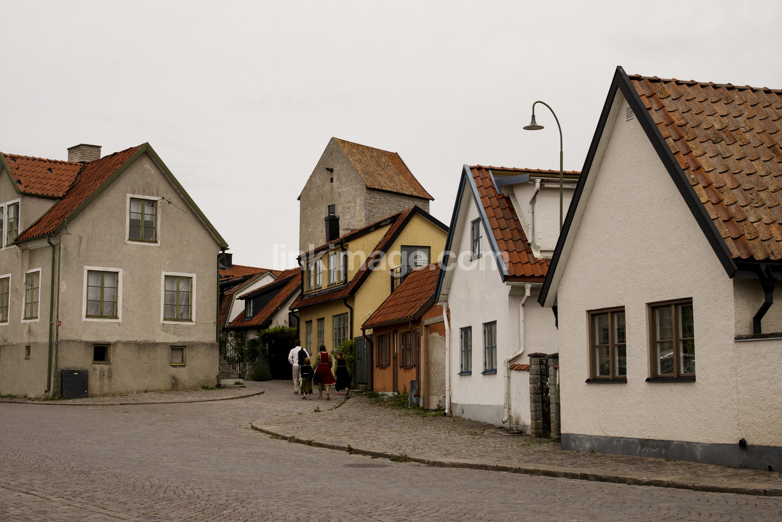 - street, street buildings, sky, house, medieval, cloudy, summer, summer city, city, pavement, tourism, visby