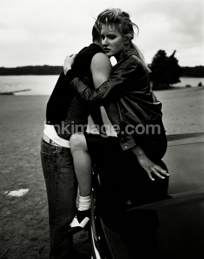 - male, female, couple, hug, proximity, tenderness, feelings, love, teens, car, nature, shore, jba069