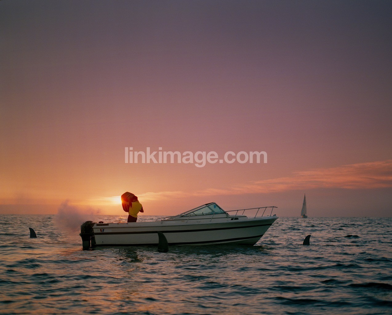 - boat, shark, sunset, red, human, natural experience, orange, pink, voltage, beautifully, violet