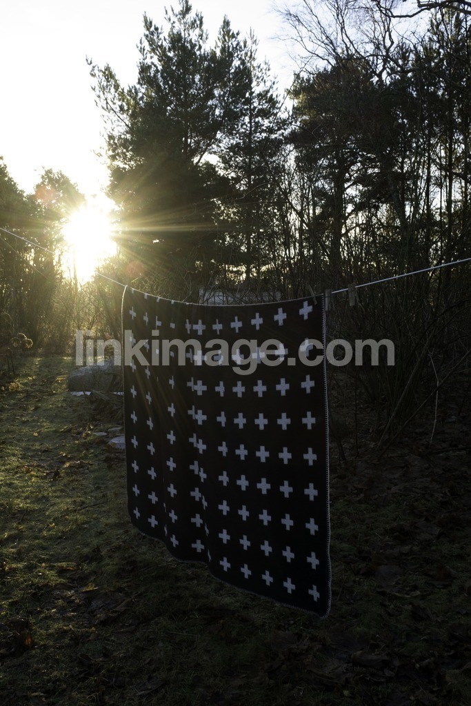 - blanket, laundry, dry, clothesline, garden, sun, morning, cross, cross blanket, symbol, housework, dryer, washing line
