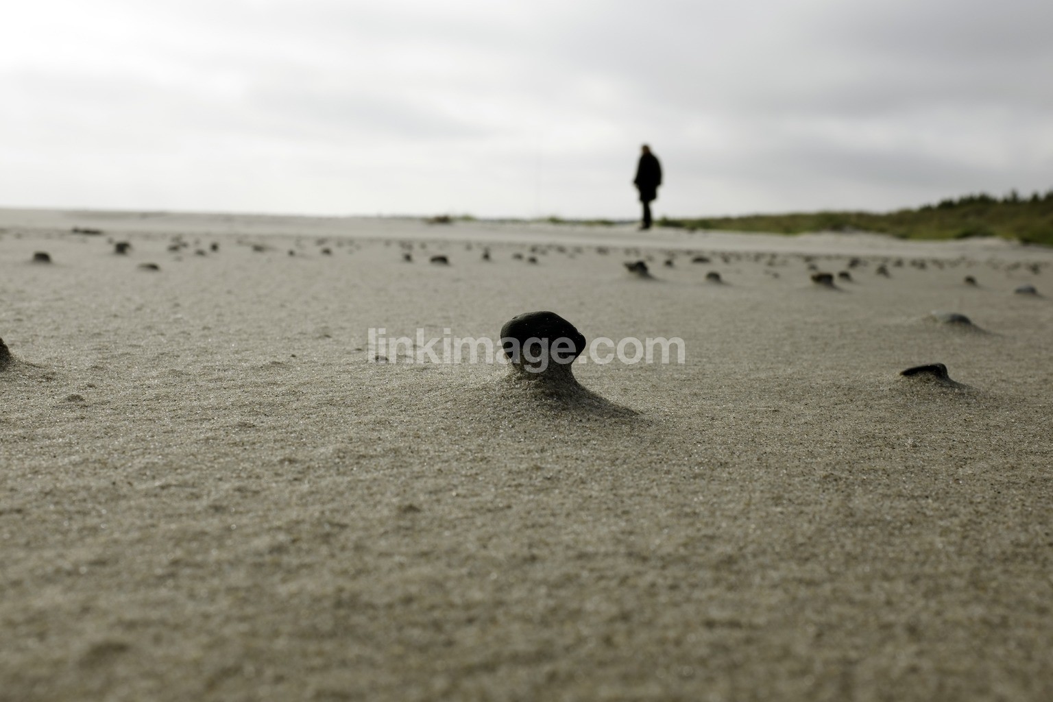 sand, sandy, landscape, stone, formation, person, horizon, form, black, alone, sea, beach