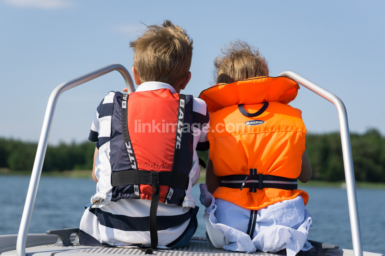 children, boat, life jacket, pleasure, sea, cliffs, friends, coastal, nature, summer, security, two, excursion, friends