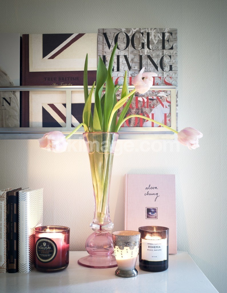- home, still life, furnishings, table, scented, interior, light, tulips, vase