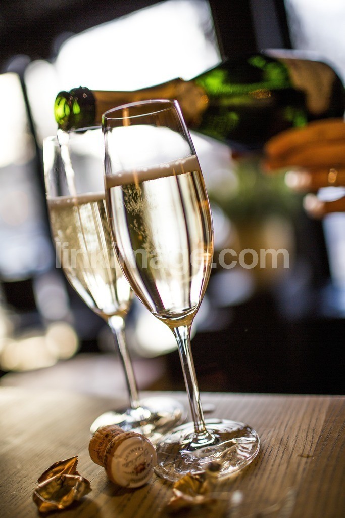 bar, bartender, champagne, drink, party, celebrate, bottle, glass, pour, feast, restaurant, serving, bowl, two