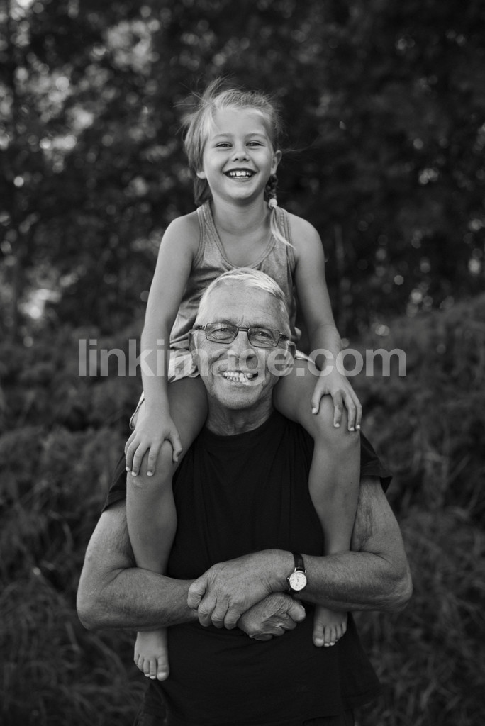 grandfather, old man, girl, summer, shoulders, children, wear, happy, joy, play, man, together, security, older