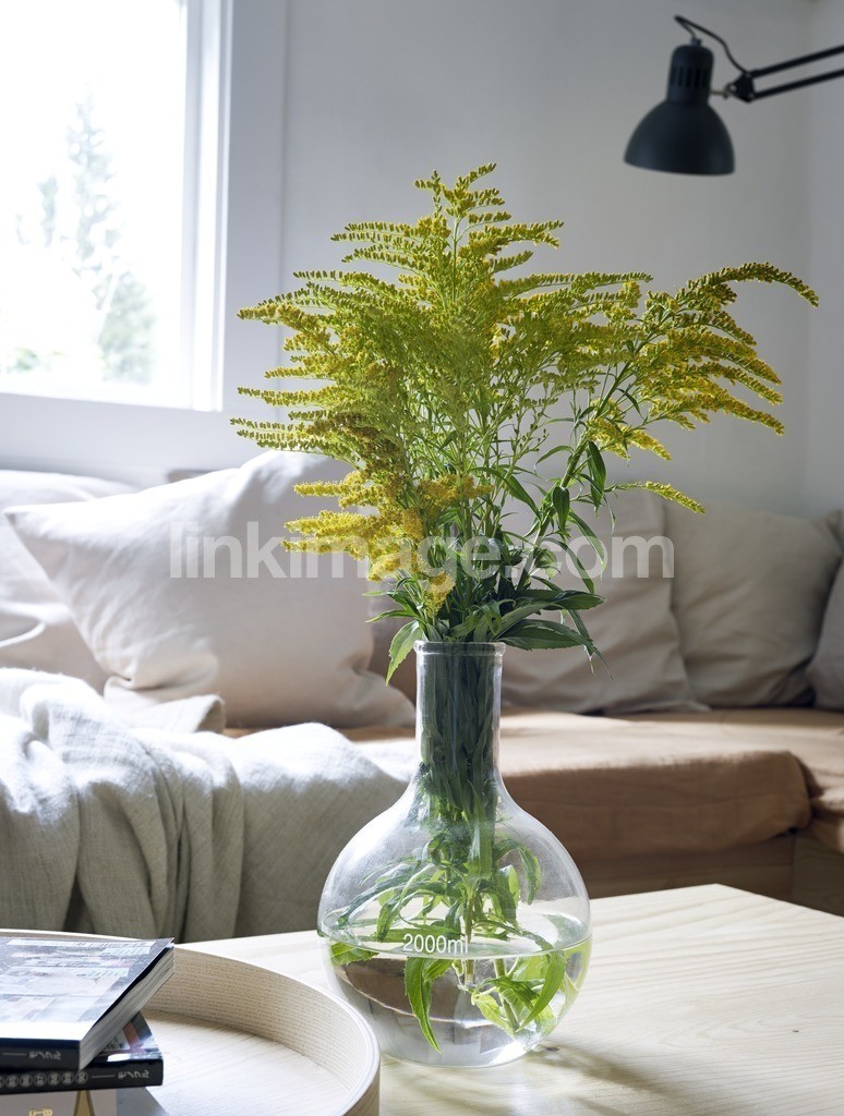 - home, furnishings, plant, flower, lamp, couch, coffee table, living room, vase