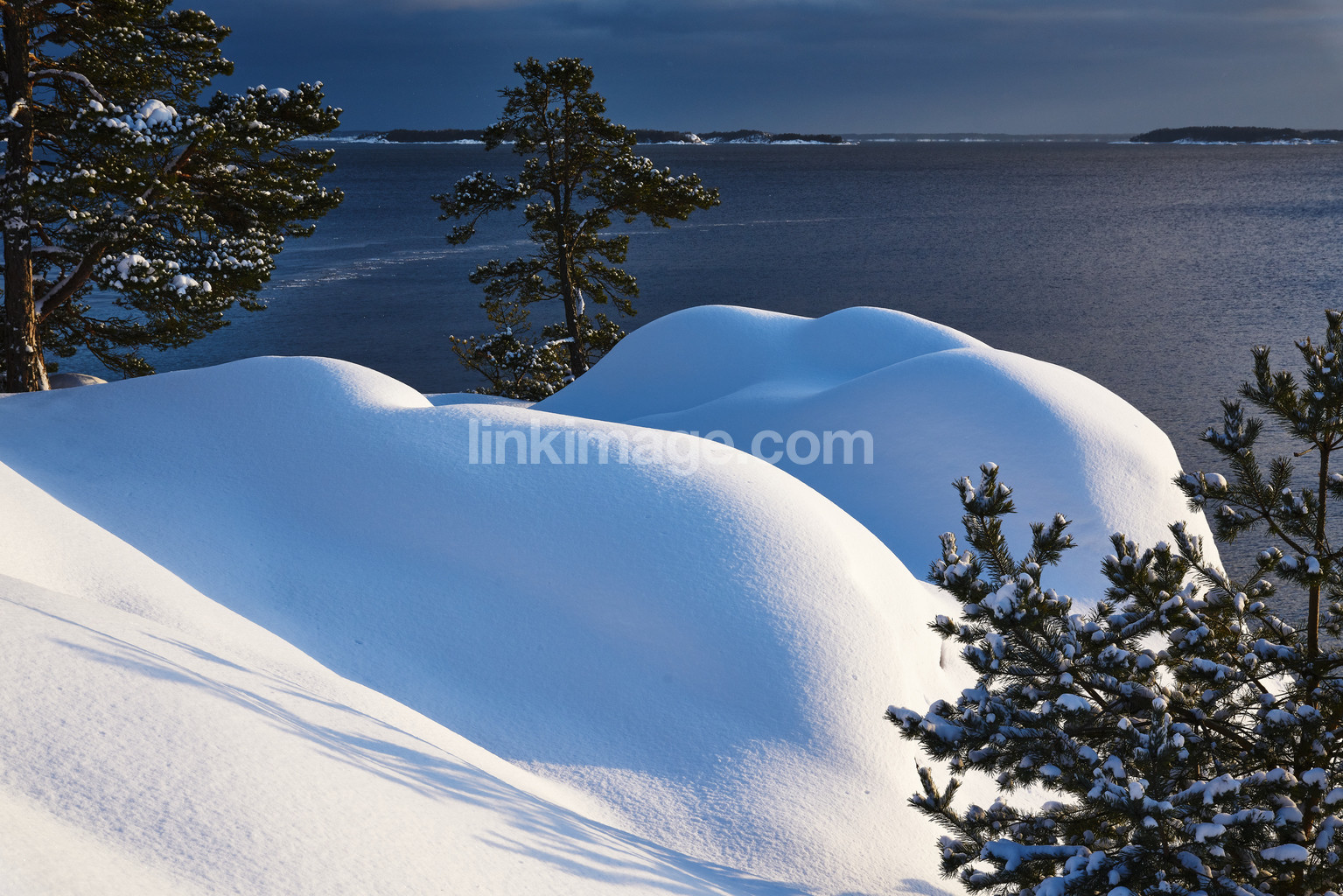 - sea, archipelago, snow, winter, cold, ice, cool, weather, water, nature, clean, sun, sunny, cliffs, coastal, landscape