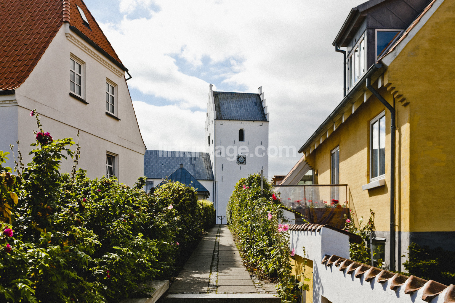 denmark, summer, village, street, house, church, pink, society, city, stone