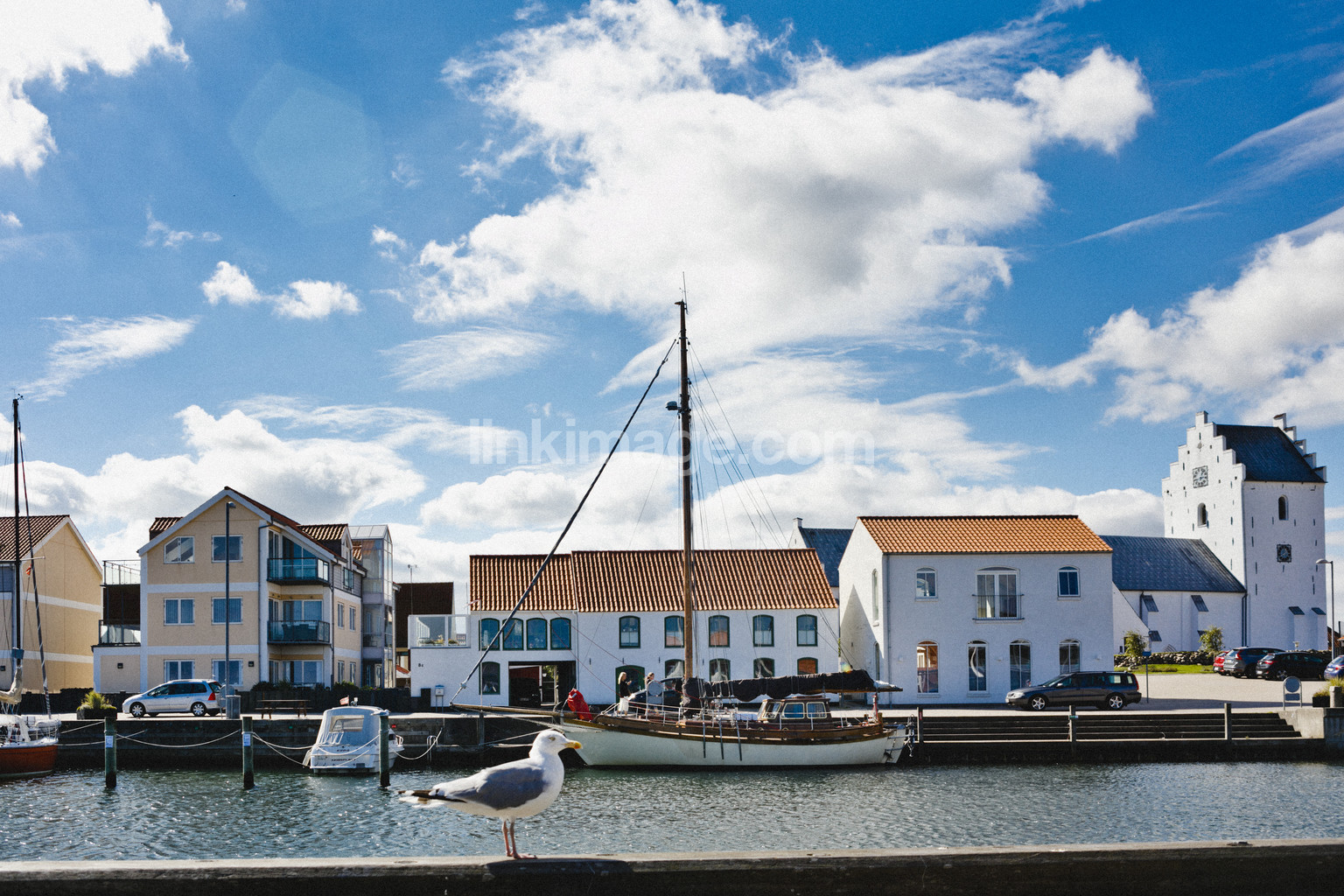 denmark, summer, , village, fishing boat, seagull, bird, port, house, gull, society