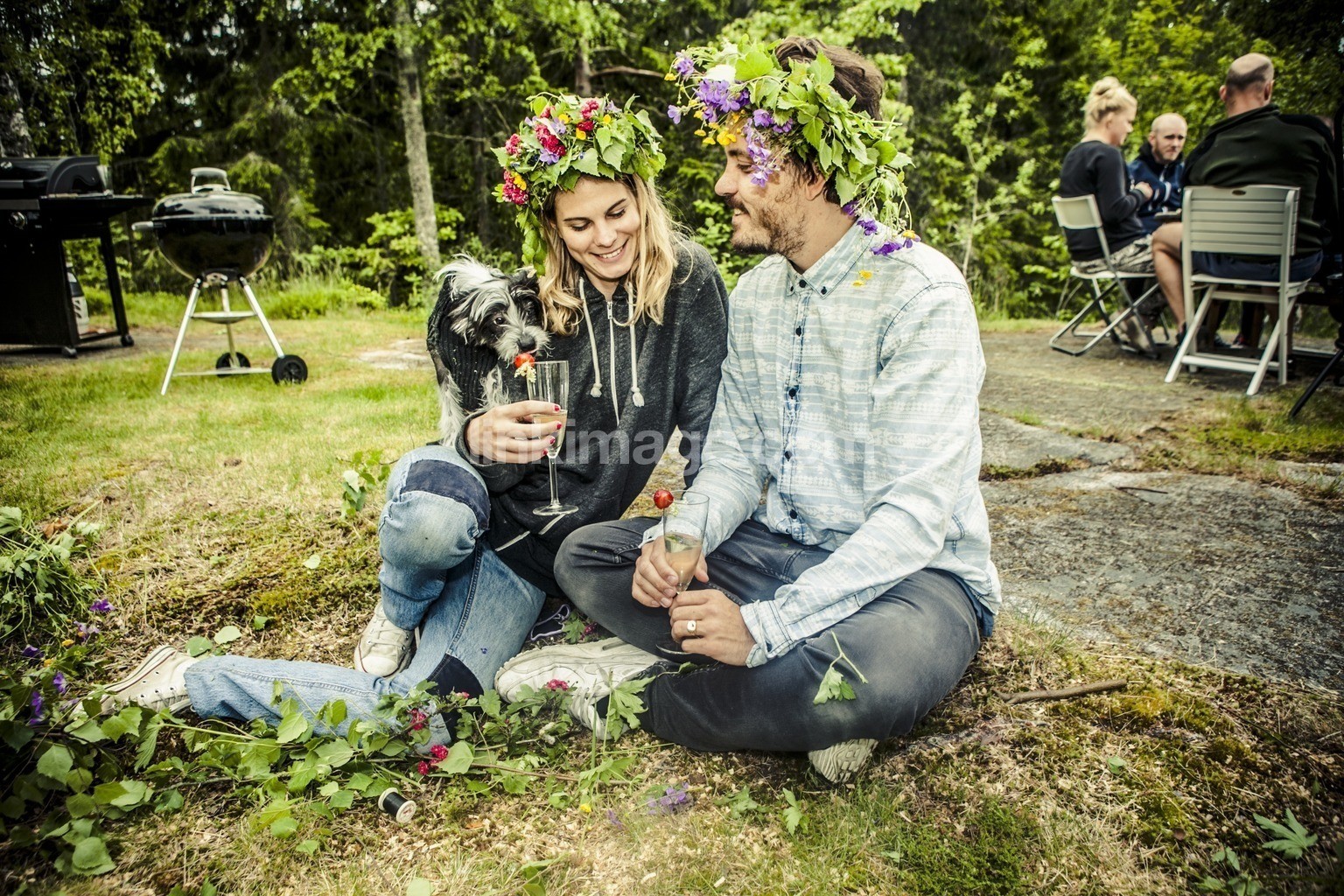 - party, countryside, midsummer, summer, tradition, traditions, , blomsterkrans, love, couple, bowl, together, two