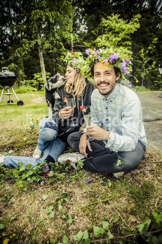 - party, countryside, midsummer, summer, tradition, traditions, , blomsterkrans, love, couple, bowl, together, two