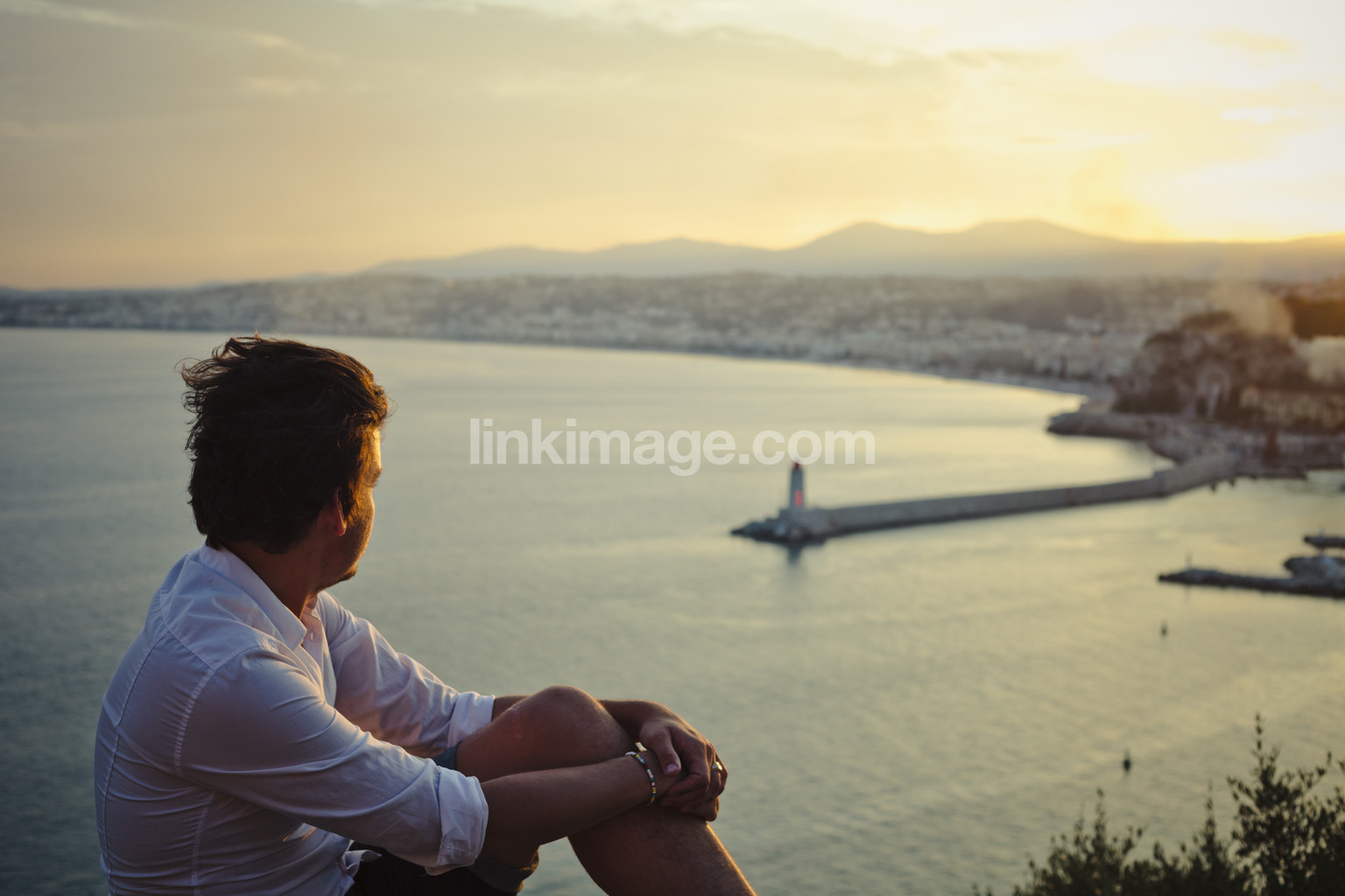 , evening, evening sun, free, man, pier, holiday, seated, dusk, city, view